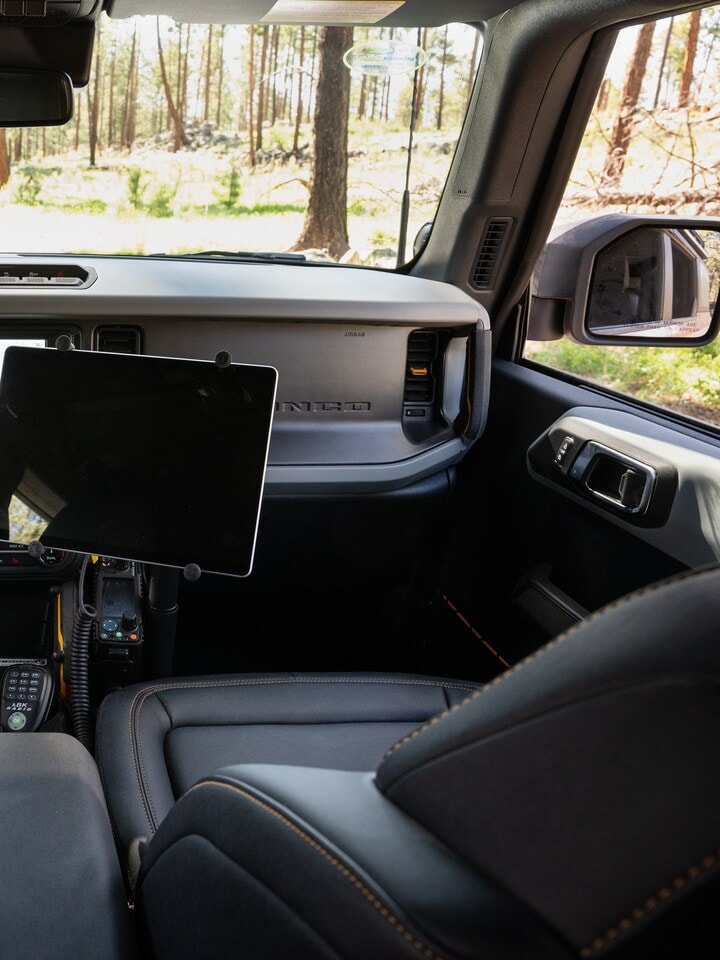 The Bronco SUV's thoughtfully designed interior offers a range of convenient storage solutions, including a center console with a large bin, door pockets, and a storage area under the rear seats. Whether you're packing gear for a camping trip or stowing away everyday essentials, the Bronco has you covered.